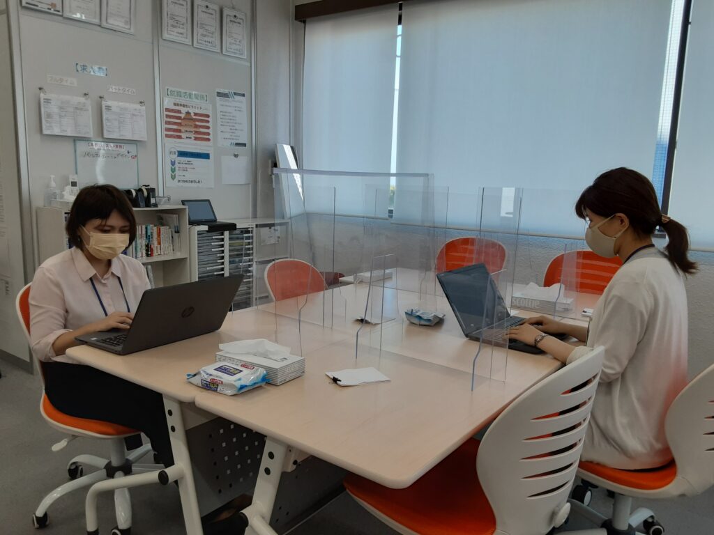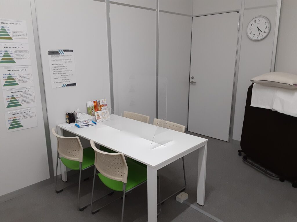 パーテーションで仕切られ、すぐに使えるよう消毒ウェットティッシュも置いてあり、新型コロナの感染対策も行っております。