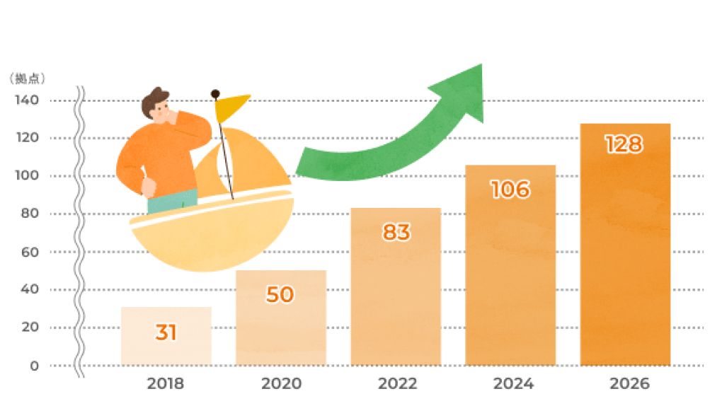 2020年では事業所数が50でしたが、2024年では106までに増加。