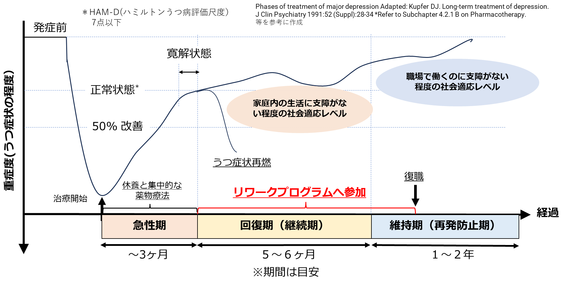 職場ではたらくのに支障がないレベルに回復し、復職していきます。