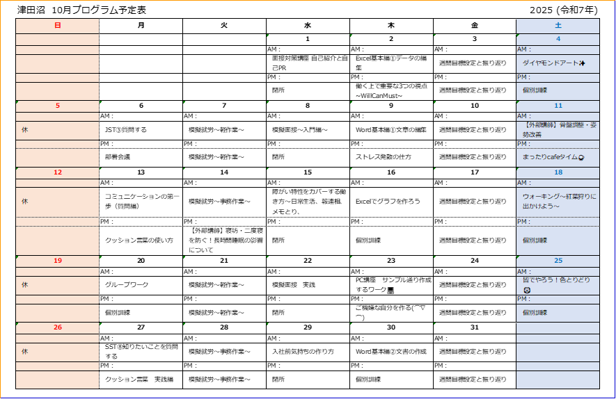 また、土曜日の余暇プログラムも体験いただけますし、プログラム参加はちょっとハードルが高い…、集団の中に飛び込むのは不安だな…という方は見学だけでもOKです!
