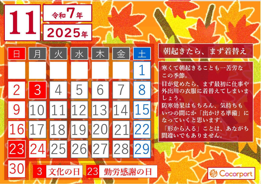 表紙と来月の11月のカレンダーをご紹介しましたが、いかがでしょうか?
