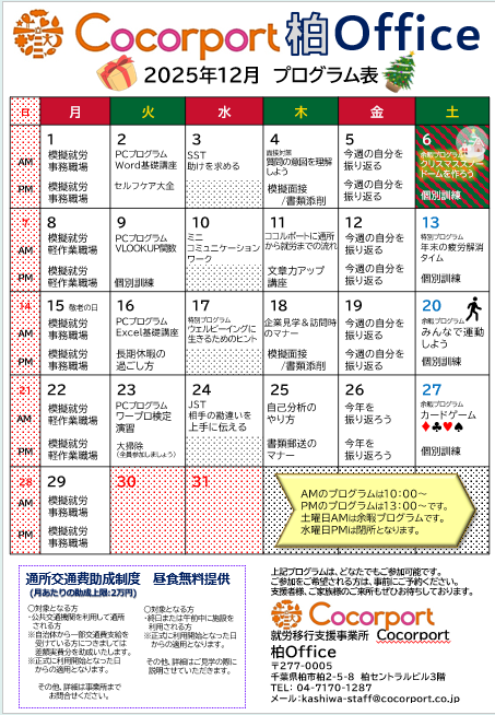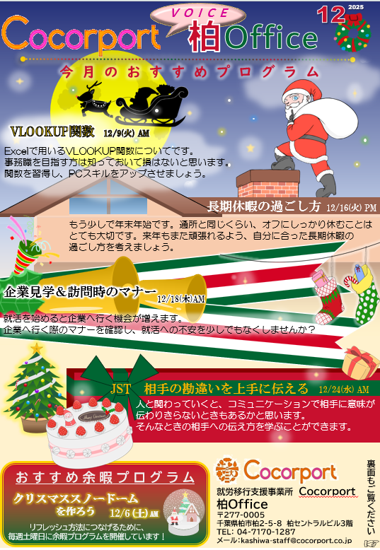 クリスマスということで、タイトルの「柏Office」もそれっぽい配色にしました。