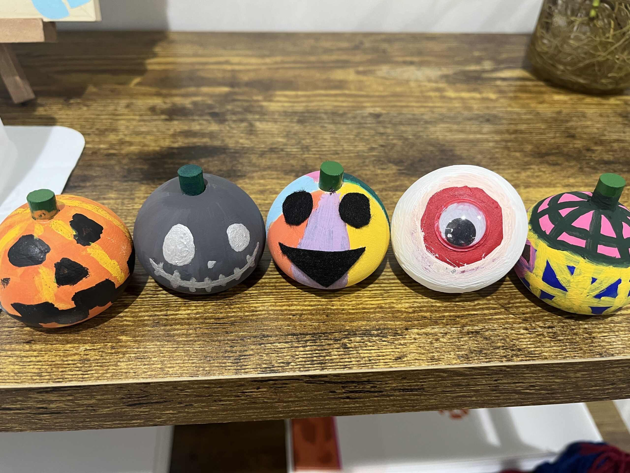 カボチャと骸骨を用意し、各々色を塗ったりフェルトやシールを貼ったりし素敵な作品が完成しました。