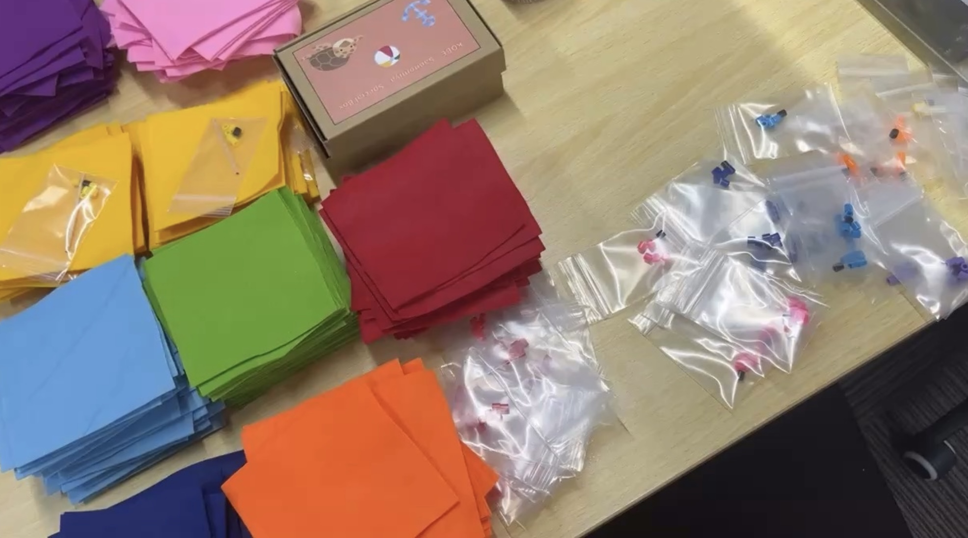 今回紹介する「手芸キット作成」では、複数の色がまざった状態のアイロンビーズを色ごとに仕分け指示書通りに封入し、布を指定通りに織り込んでメッセージカードと共に梱包するといった業務を用意しました。もちろん検品の業務も待ち構えています!