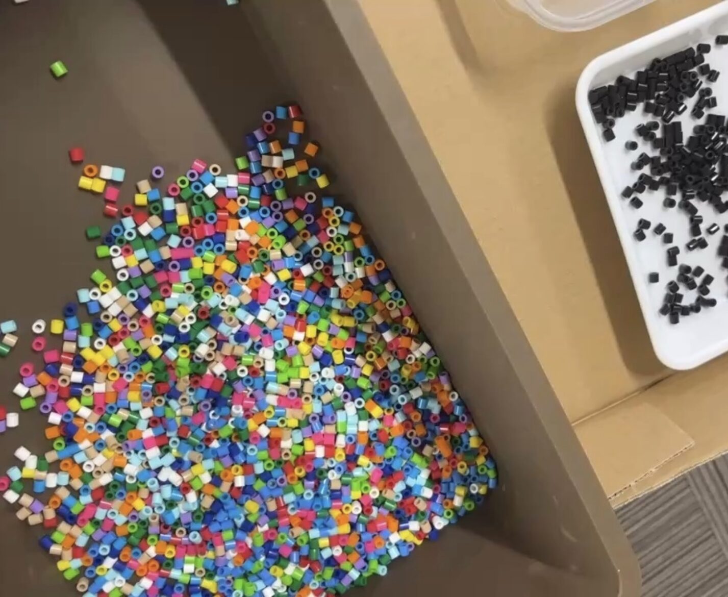 模擬就労ではどんどん試練を用意していきますので画像の通り10色以上のビーズを混ぜてお渡ししました(笑)