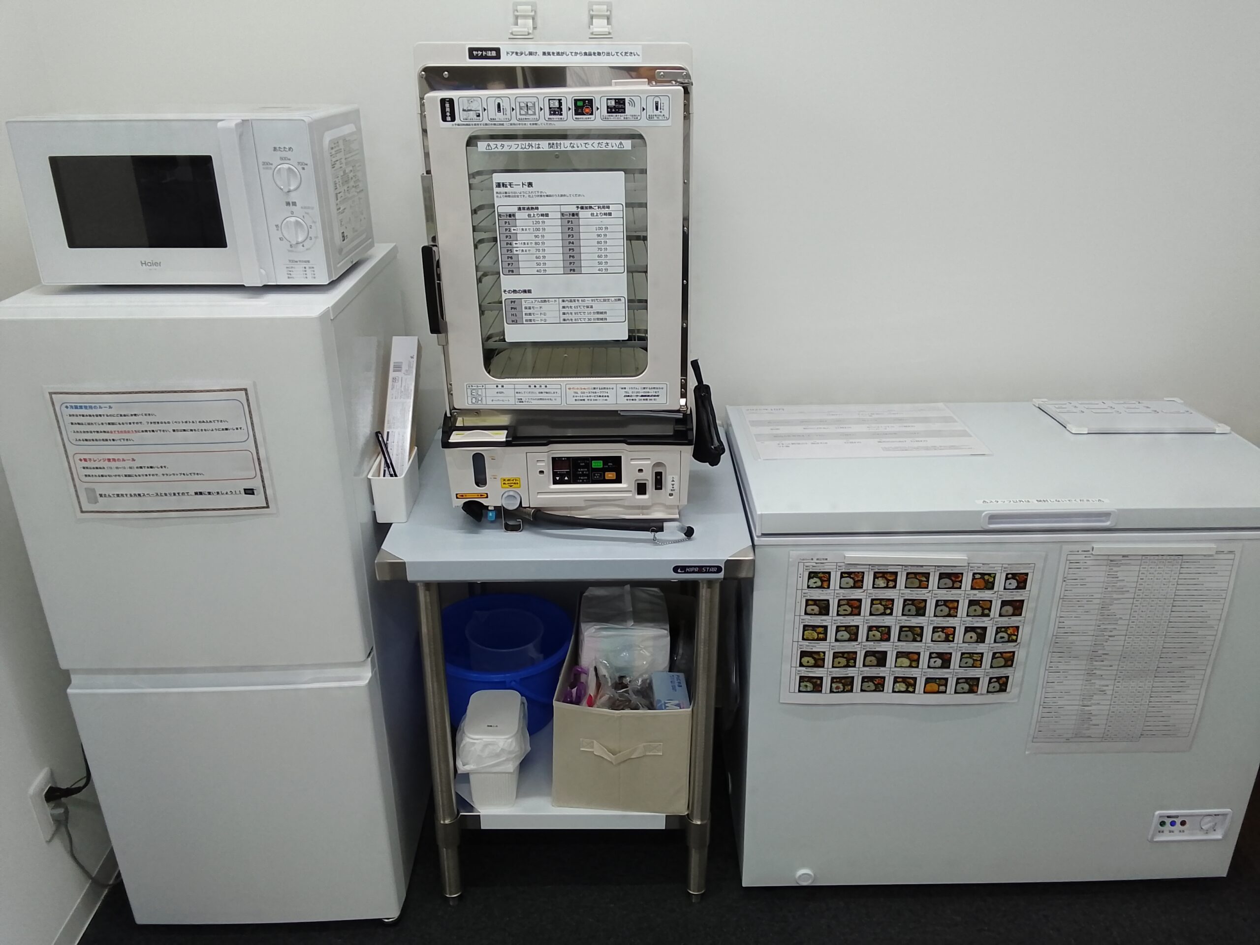 冷蔵庫・電子レンジは昼食時ご利用いただけます👍こちらの冷凍庫に入っているお弁当は希望者への提供をしています🍱