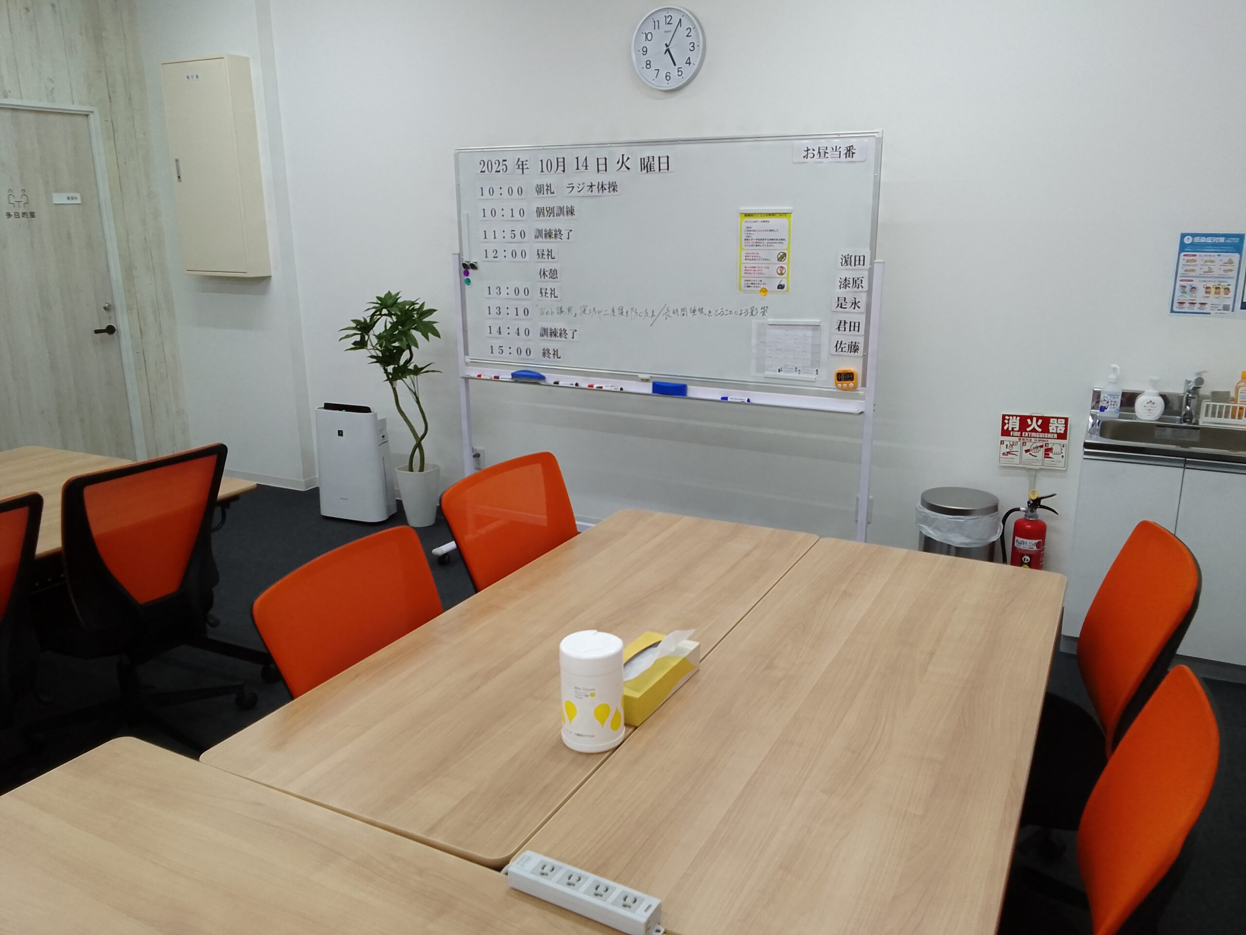 開放感のある広々とした空間で、コーポレートカラーのオレンジを基調としています🍊