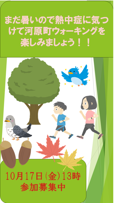 こちらのポスターにもあるように、涼しくなってきたとはいえまだまだ暑いので熱中症に気を付けなが