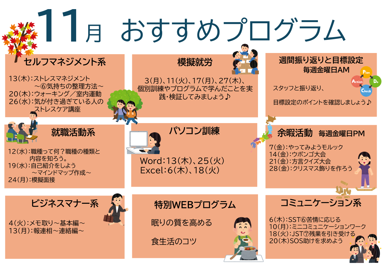- 🍁🍁11月後半のお勧めプログラム🍁🍁
