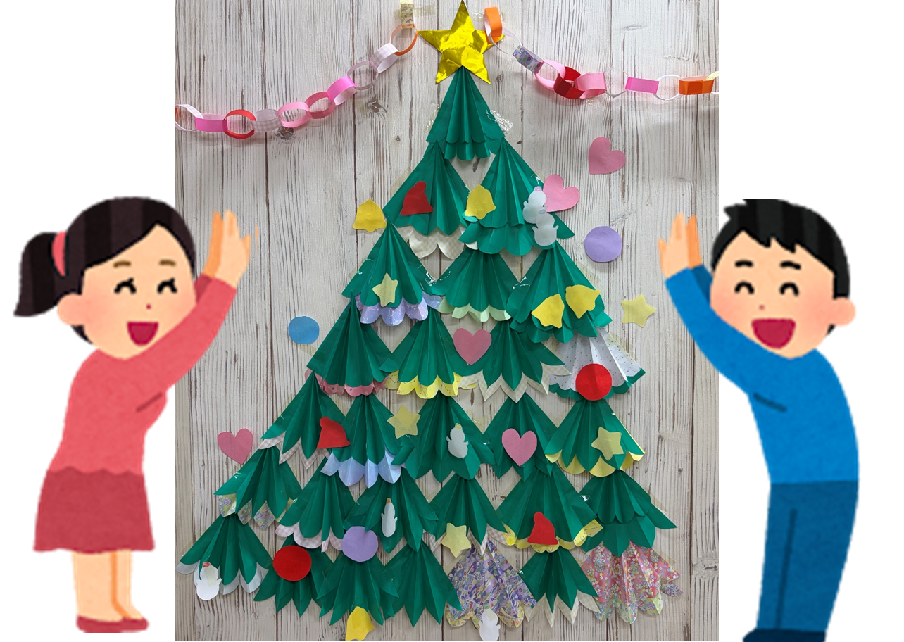 思い思いに利用者様が作ってくださった小さなクリスマスツリーを1つの葉に見立て