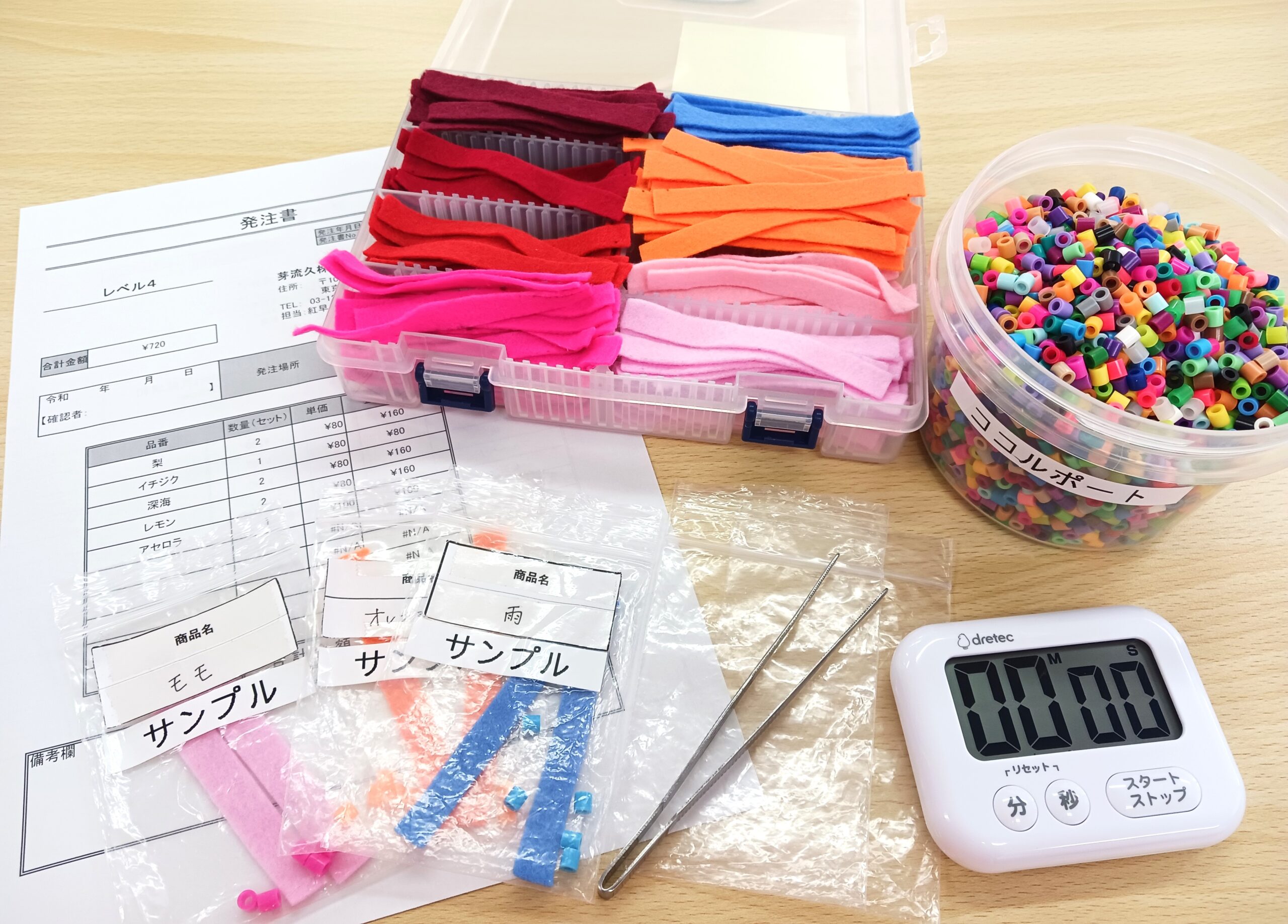 最初は、ナノブロック、読書、アンケート仕分けなど、簡単な物で集中力や朝起きる生活リズムを作り、慣れてきたら事務作業や、部品の組み立て、解体などの細かい作業をする。