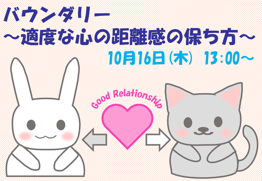 プログラム「バウンダリー~適度な心の距離感の保ち方~」は10/16(木)13:00~15:00開催予定です。