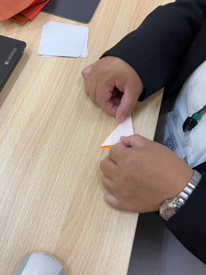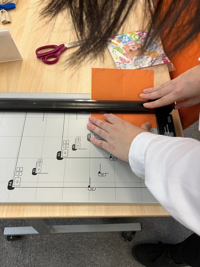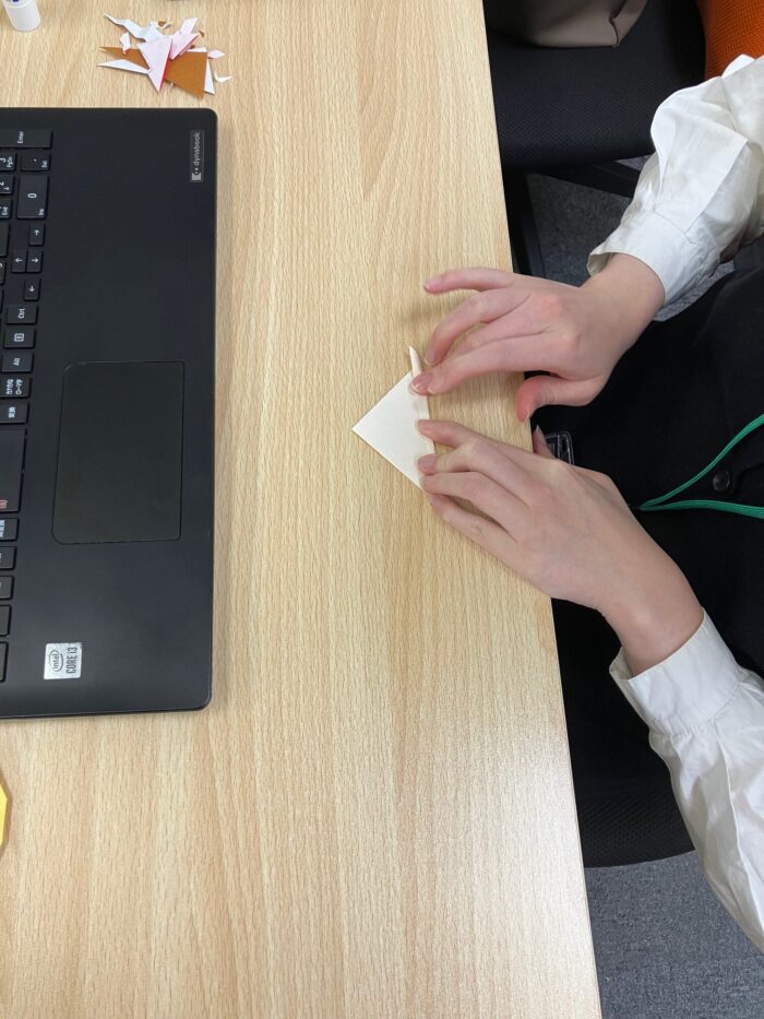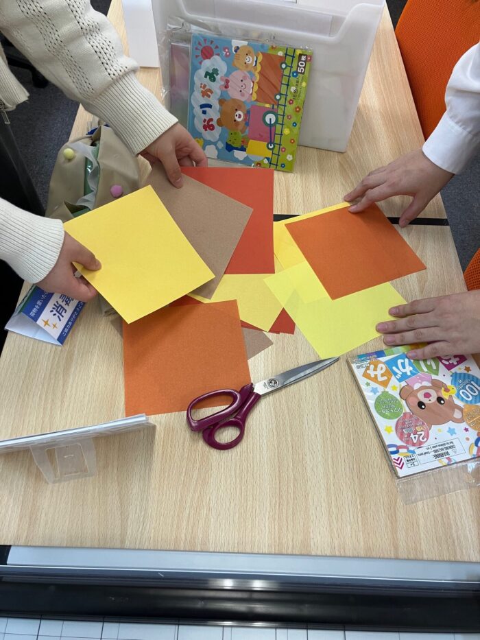 その次に、選んだ折り紙を落ち葉に合うサイズにカットします。