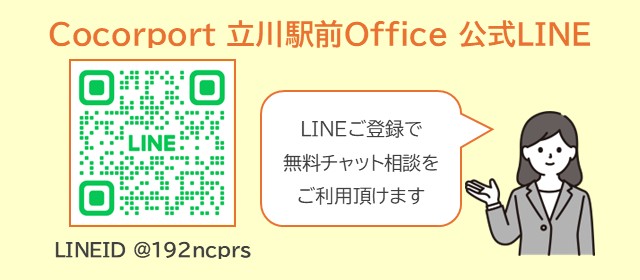 立川駅前Office(就労移行支援(リワーク)事業所)は立川駅から徒歩6分とアクセスが良い場所に立地しています。建物は清潔感があり、快適に訓練をしていただける環境が整っております。 働くことでお悩みの方、まずは一度Cocorportに相談してみませんか? Cocorportがお悩み事の解決に向けたお手伝いができれば幸いです。 Cocorport 立川駅前Office(就労移行支援(リワーク)事業所)スタッフ一同、お待ちしております! 見学・相談会など随時受け付けておりますのでお気軽にご連絡ください!