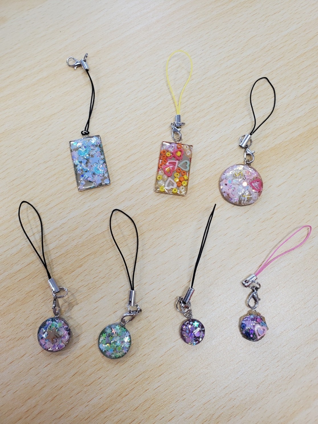 出来上がったものは、スマホやかばんにぶら下げたり、